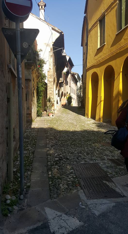 Encontrei por acaso, mas foi uma agradável surpresa. Voltando para o centro da cidade, a partir da Porta San Tommaso, fui admirando a arquitetura dos prédios históricos e notei esta rua sugestiva com casas e pórticos típicos. Me apaixonei!